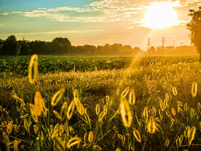 白露至,朝晖漫染郊外。草穗凝露,日光温柔洒落,晕开一幅清润静美的秋天田园画。(温县纪委监委 原 摄)。
