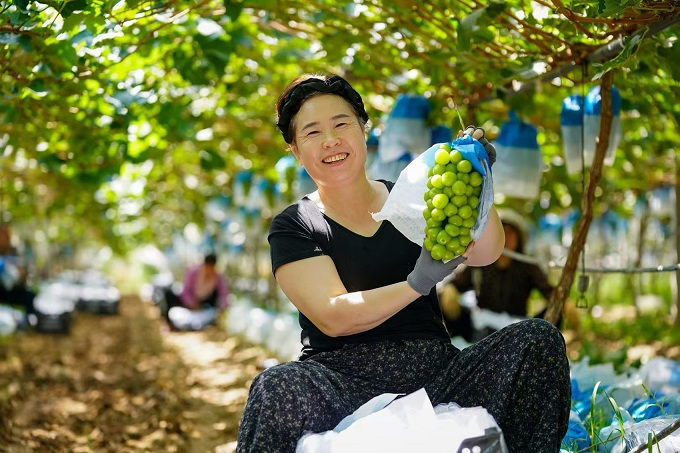 灵宝市沿黄生态廊道葡萄种植里,村平易近正正在忙着采摘葡萄,秋天的阳光透过葡萄叶洒下斑驳的光影,绿莹莹的葡萄犹如翡翠珍珠,村平易近脸上显显露丰收的喜悦。(灵宝市纪委监委供 花雪红 摄)?。
