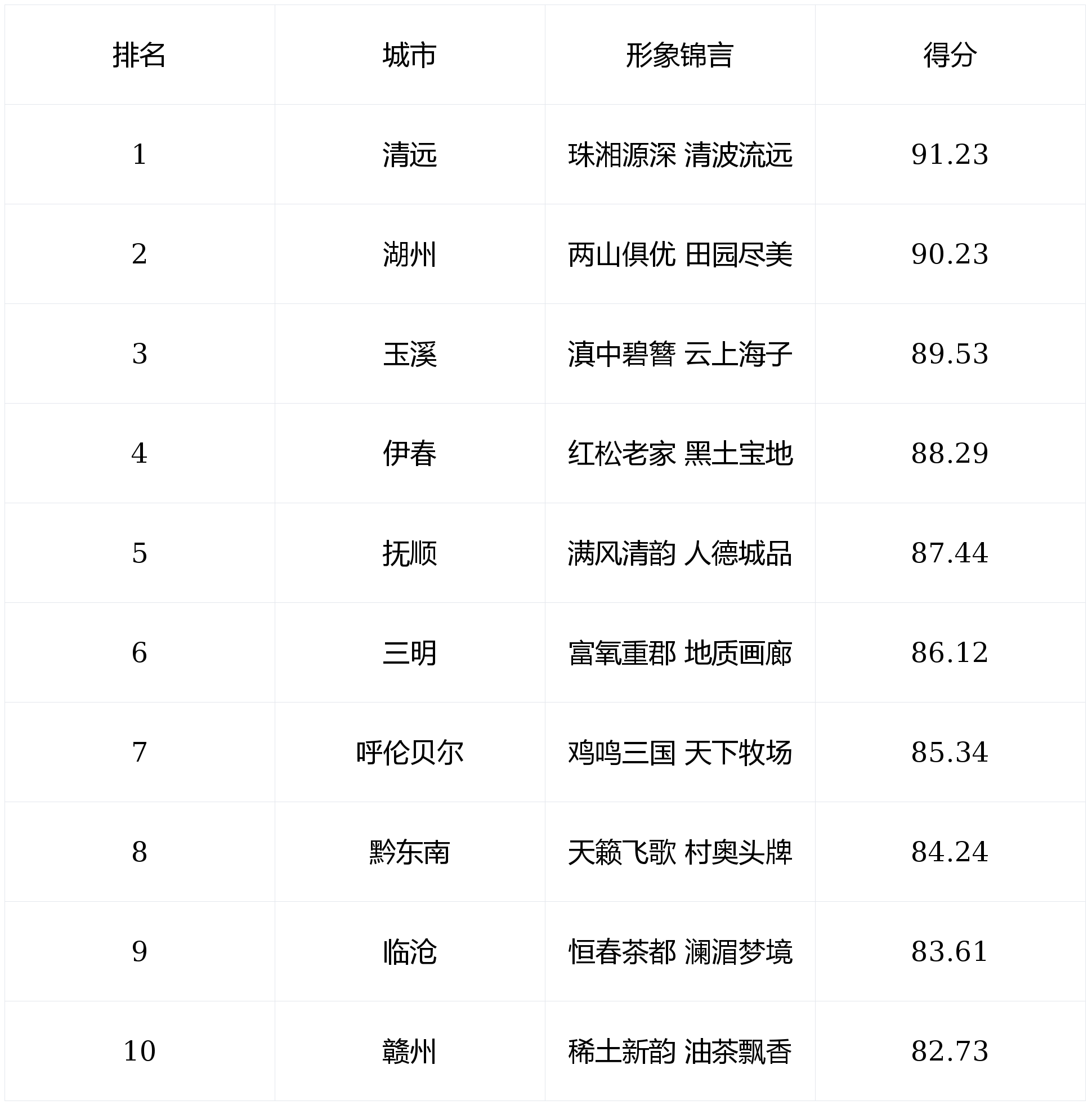「中国绿色合作力十强市」,使用《GN中国城市绿色合作力评价目标系统》进行评价,该系统由绿色生态空间指数、绿色出产空间指数、绿色糊口空间指数正在内的3项一级目标、16项二级目标形成,并对上榜城市给具点睛其绿色美韵的简练抽象锦言。