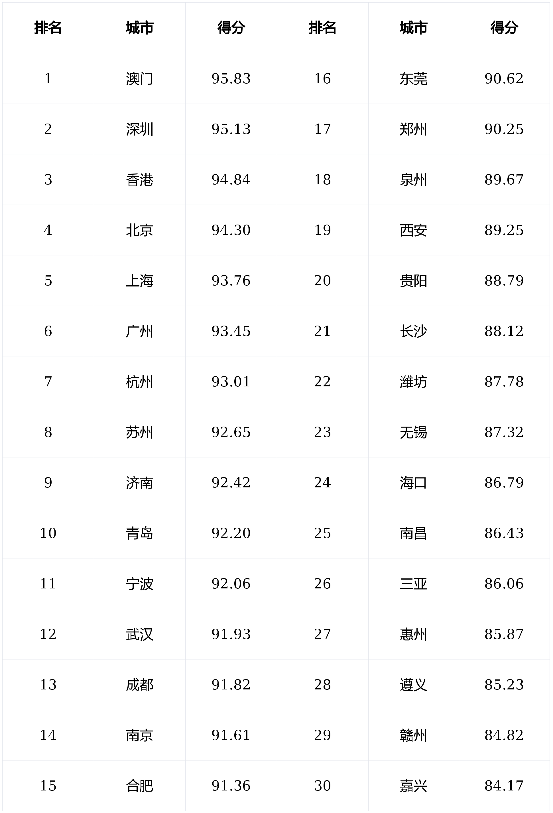 正在平安城市评价中,澳门以极低的犯罪率、高效的警务系统、严谨的及高度不变的社会次序,荣获“中国最平安城市排行榜”第一名,深圳、青岛位列第二、三位。正在“中国十佳食物平安城市排行榜”中,凭仗严酷的监管系统取高度的食物平安认识继续位居榜首,澳门、连结二、三位。
