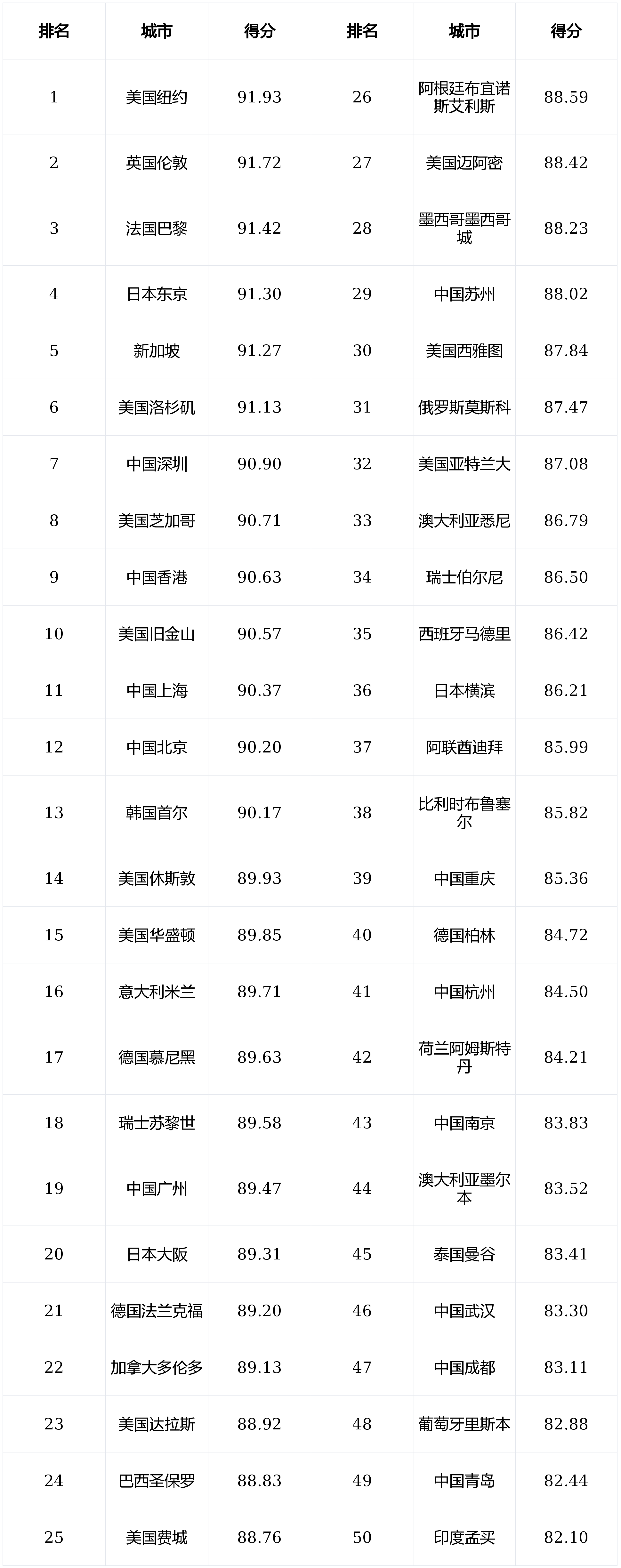 全球城市合作力指正在全球一体化和市场经济从导视阈下,资本潜力、文化蕴力、科技动力、立异能力、办理效力、平易近生保障等诸多要素分析而成的分析合作劣势。