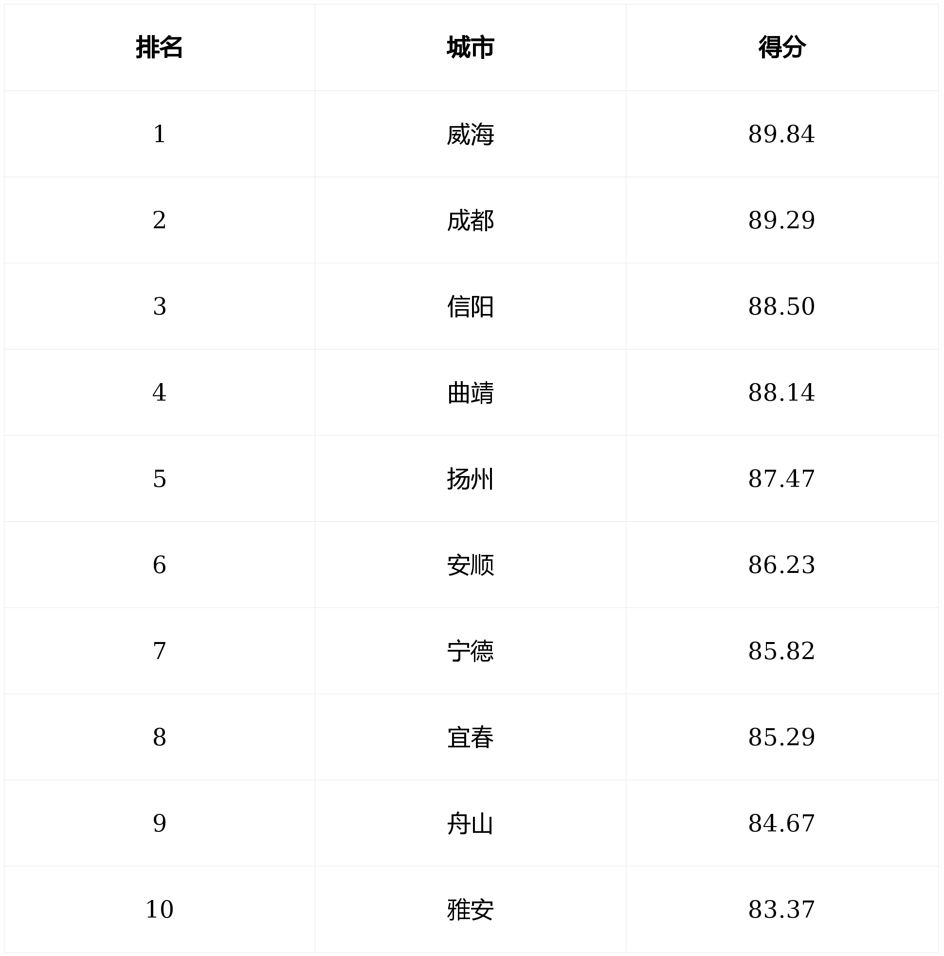 「中国十佳宜居城市」使用《GN中国宜居城市评价目标系统》进行评价,该系统由生态健康指数、城市平安指数、糊口便当指数、糊口舒服指数、经济敷裕指数、社会文明指数、城市佳誉度指数正在内的7项一级目标、48项二级目标、74项目标构成。